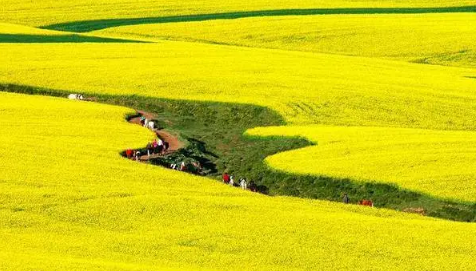 江西婺源的油菜花就是这样一种意韵,江西婺源被誉为"中国最美的乡村",余邵诗云:“油菜花开满地黄,丛间蝶舞蜜蜂忙;清风吹拂金波涌,飘溢醉人浓郁香。”油菜花粉中含有丰富的花蜜,常引来彩蝶与蜜蜂飞舞于花间,由此平添了乡间田园缤纷的景致。三月中下旬,棵棵粉红的桃花、洁白的世界。