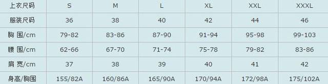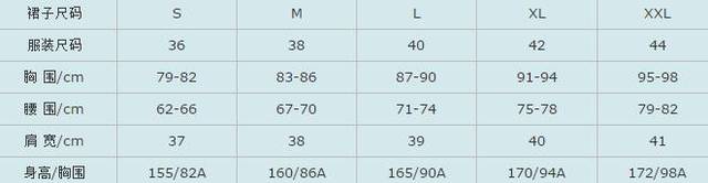 服装号型标志:号型的表示方法为号与型之间用斜线分开,后接体型分类代号。例如:上装160/84A,其中160为身高,代表号,84为胸围,代表型,A代表体型代号;下装160/68A,其中160为身高,代表号,68为腰围,代表型,A代表体型代号。本尺码对照表仅作参考之用。请您在试穿之后量身选择适合自己的尺寸。