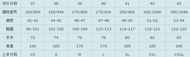 说明:上述提供的计算公式是根据经验得到的数据参数,试用于绝大多数人群,不适用于特殊体型要求。国内比较普遍的一个判断胖瘦的公式是:男性标准体重:身高(厘米)-105= 标准体重(千克)本尺码对照表仅作参考之用。请您在试穿之后量身选择适合自己的尺寸。