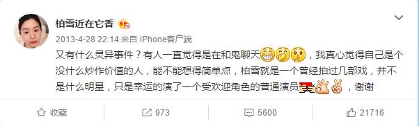 柏雪也针对灵异事件给出回应。