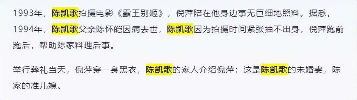 葬礼期间,陈家人还介绍说,倪萍是陈凯歌的未婚妻。
