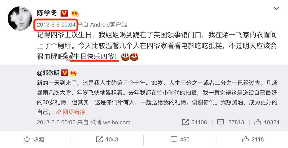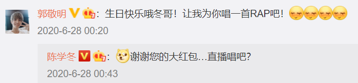郭敬明没有淡出大众视线以前,还会偶尔和陈学冬互动一下。