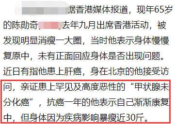 后来,陈勋奇患上罕见病——甲状腺未分化癌,因化疗暴瘦30斤,一个个打击接踵而来,几乎摧毁了他的意志。
