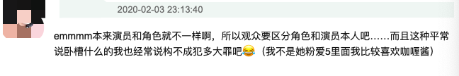 但也有网友表示本来演员和角色就不一样,所以观众要区分角色和演员本人。