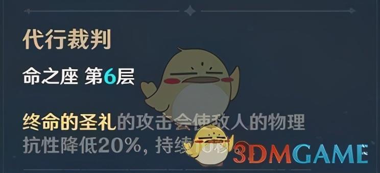 3. 「罗莎莉亚」释放元素爆发时能通过天赋能给队伍中的其他角色增加暴击率,并且命之座 第6层的效果还可以使元素爆发降低被攻击到的敌人的物理抗性。