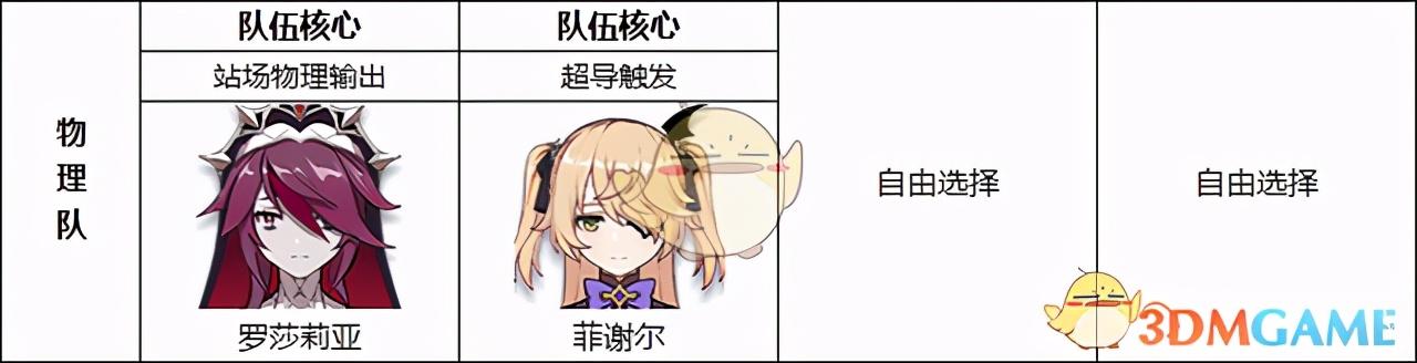以「罗莎莉亚」为站场物理输出的队伍基础搭配。