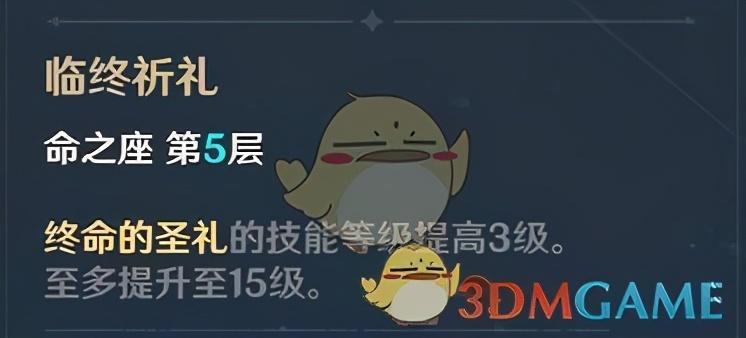 「终命的圣礼」释放时可以联动触发「罗莎莉亚」的固有天赋「暗中支援的黯色」,释放「终命的圣礼」时基于「罗莎莉亚」属性面板暴击率*15%增加其他队友的暴击率,持续10秒,最高不超过15%。