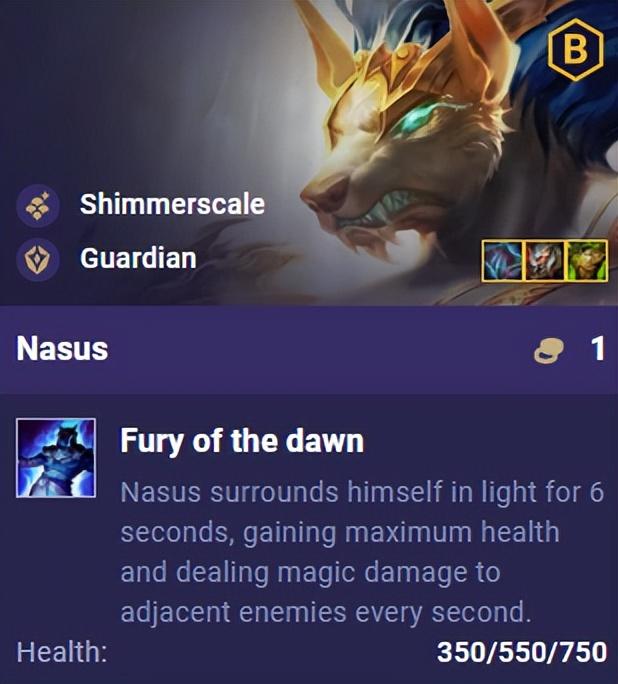 技能:内瑟斯使自己全身笼罩于光芒之中6秒,提高350/550/750最大生命值,期间对相邻的敌人每秒造成60/90/120ap的魔法伤害。