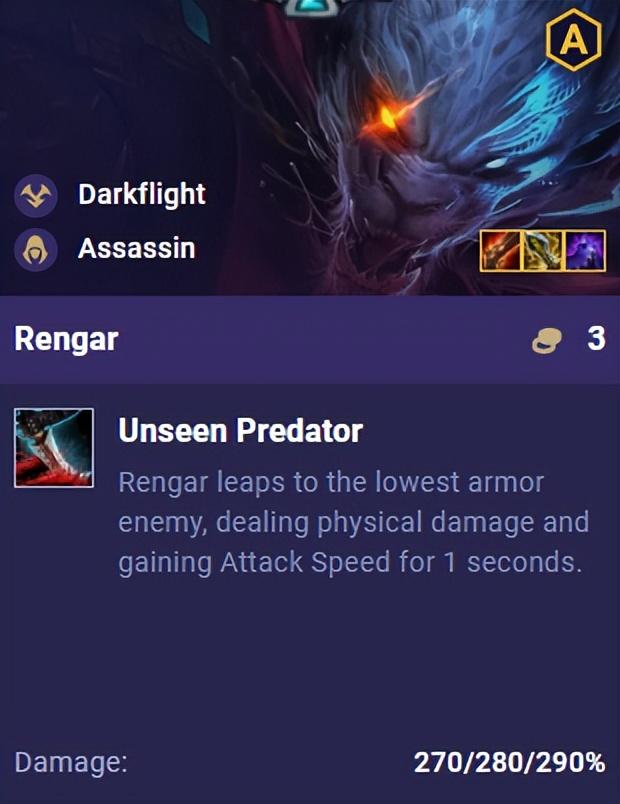 技能:洛飞向他攻击范围内最远的敌方棋子,缴械并嘲讽沿途所有敌人1.25/1.5/2秒,然后在4秒内为自己提供一个200/375/550ap的护盾,在此期间洛每次普攻会为自己恢复50/60/70ap生命值。