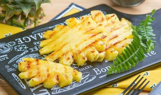 烤菠萝实际上味道更浓,味道更甜,因为部分水分已经蒸发,所以甜味更浓。使用烤箱制作烤菠萝时,可以在菠萝表面涂上一层蜂蜜,这样可以锁住菠萝本身的水分,吃起来更加香甜。
