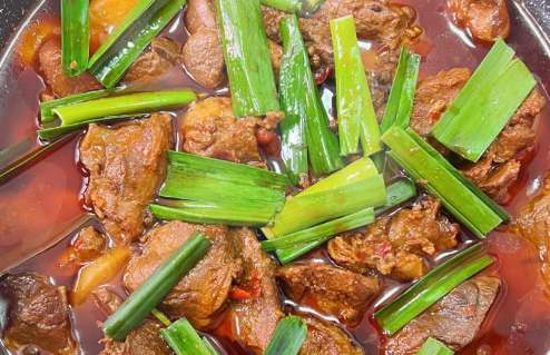 需要的材料:牛腱子肉1kg,酱油、花椒、八角、桂皮、草果、香叶、陈皮、山楂、干辣椒、甜面酱、洋葱、生姜、豆腐乳