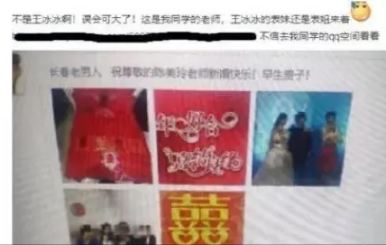 而随后,还有网友爆出了王冰冰的结婚照,以及她19岁时发的博客截图,称王冰冰根本不是单身,如今已经32岁了,并且早已结过一次婚,根本不符合“国民初恋”的人设。