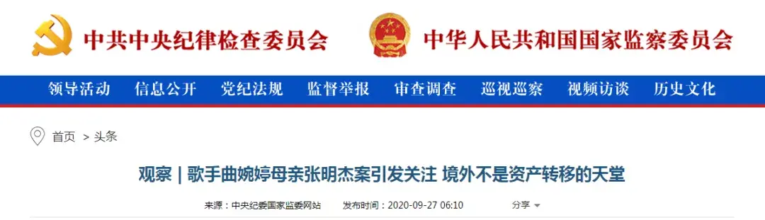 而针对曲婉婷这些年,拿着母亲贪污的钱在国外逍遥自在,中纪委也早就发表评论: