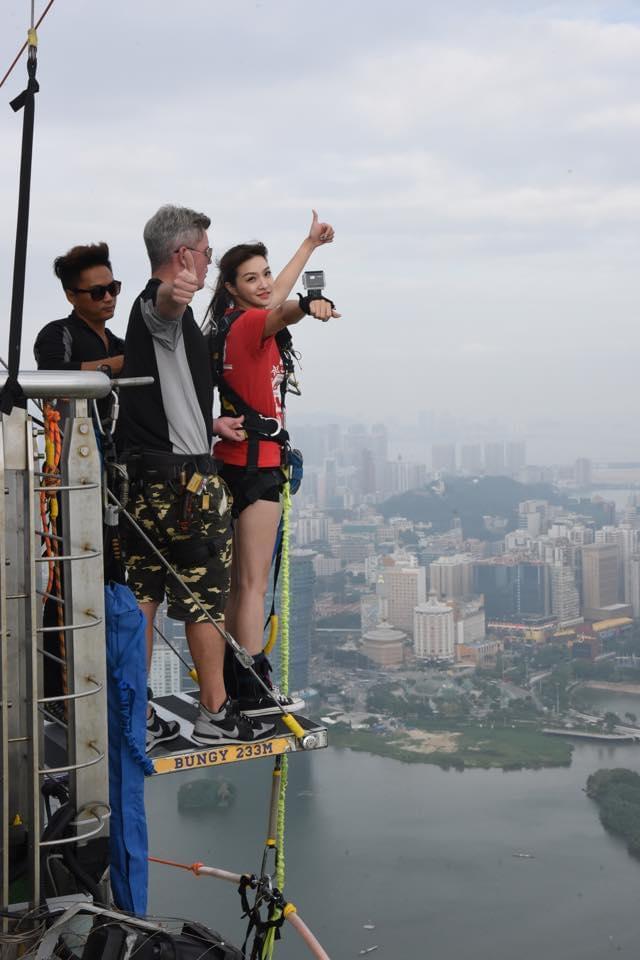 正在准备蹦极的夏语芯,充满勇气的她马上要进行惊心动魄的一跳。