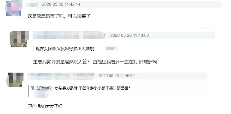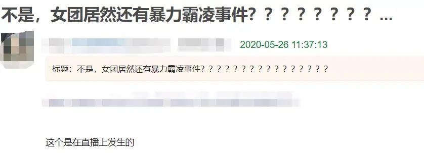 没想到,时隔半年会因为直播中的哭喊让整团再次陷入霸凌事件,虽然并没有确定真相,但是大部分网友都十分抵制这种暴力行为,甚至觉得属实就是故意伤害,可以报警了。