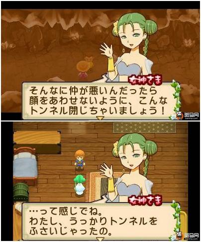 很久以前,两个村庄的洞穴是相通的,但是双方村长的争吵激怒了女神,如今这个洞穴就被封锁了。关系修复的情况可以在《牧场物语》系列中玩家们所熟知的“女神大人”处得知。