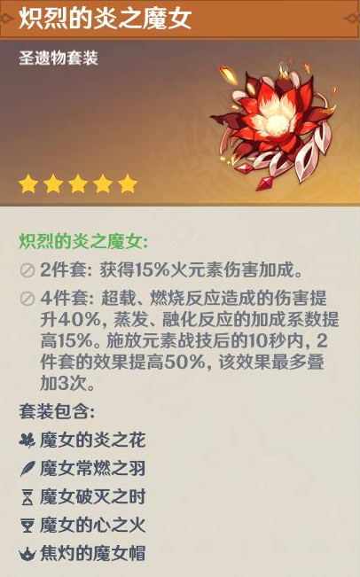 当然,如果有词条比较好的2魔女+2乐团,也是个不错的选择,因为仅比魔女4少7.5%的火元素伤害加成。