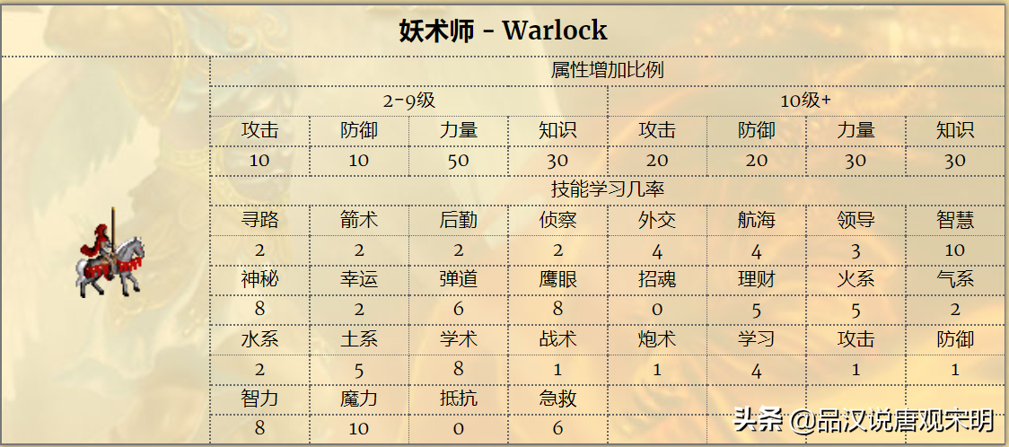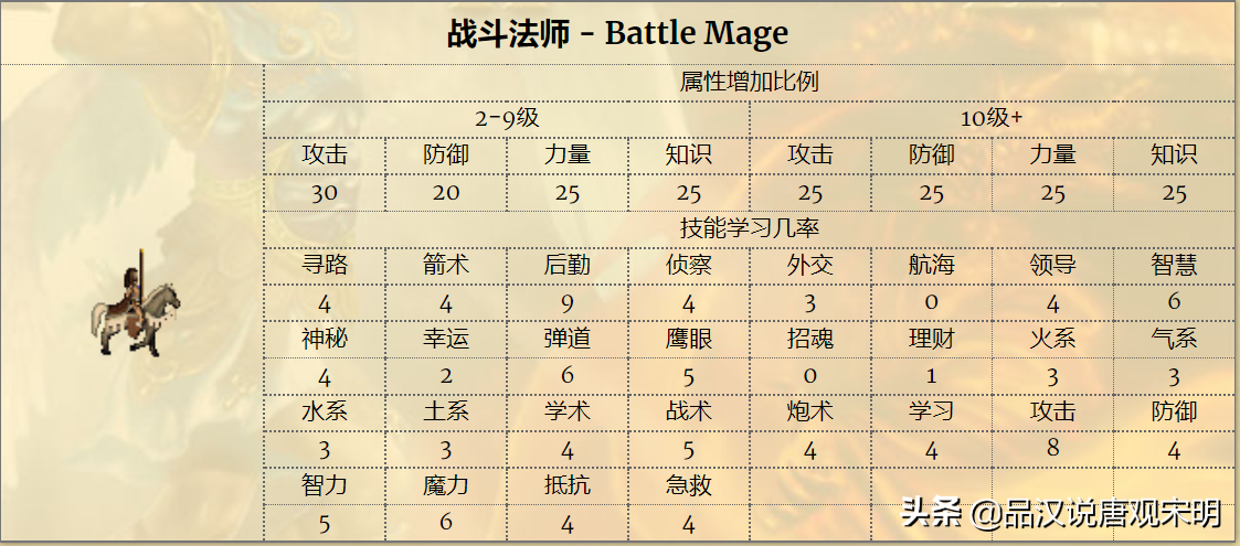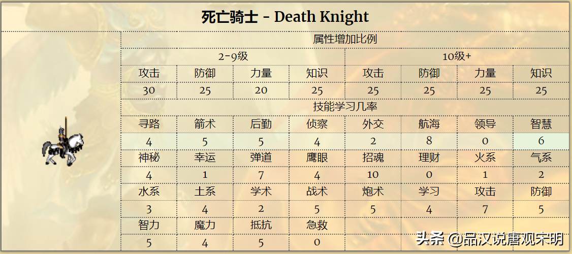 也是分为了物理系的死亡骑士和魔法系的巫师,前者初始属性1221;后者初始属性1022。