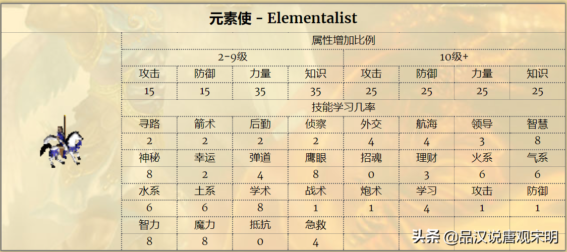 而元素使的初始属性0033,再加上学习四系的概率最高,以及数名强力英雄的搭配,都让这个职业成为了18个职业里排行前三的职业。