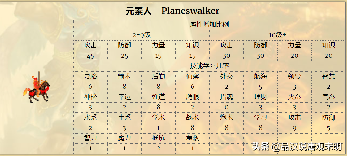 元素人的基础属性虽然非常高,达到了3122,但是实际的技能搭配却很一般。而且可学习的技能里,类似侦察、学习、弹道这些没用魔法的概率很高。