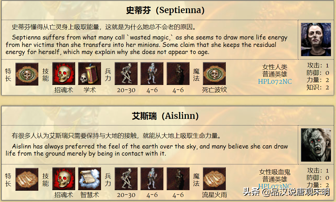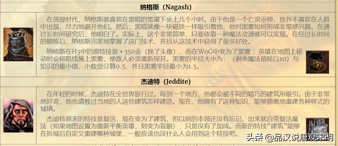 因为篇幅所限,我们上一次只能列出城堡、堡垒、塔楼、和地狱族四个种族的英雄列表。