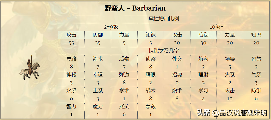 野蛮人职业初始属性4011,是初始攻击最高的职业。也和据点族兵种最搭。当然,在技能上,野蛮人最容易学习到的也是攻击。