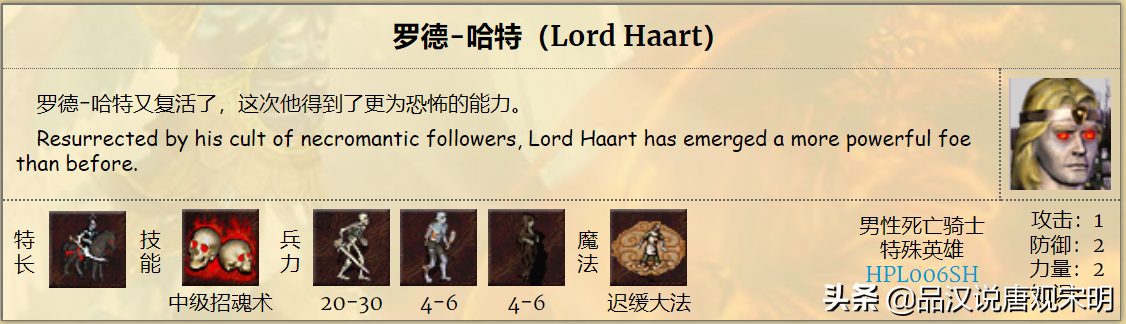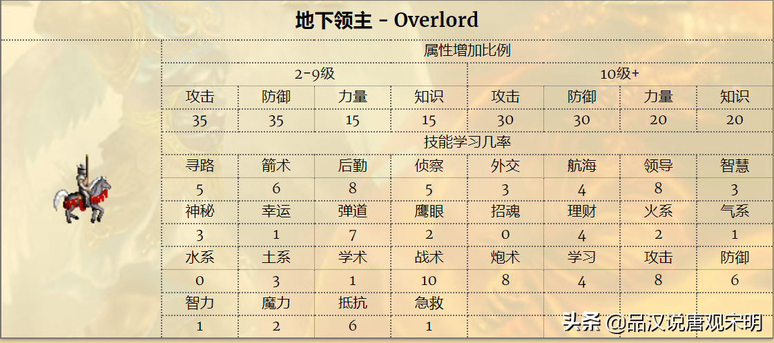 而罗德哈特给恐怖骑士,一上来1级就提供了5点攻防和10点伤害。