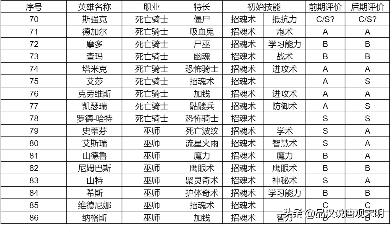 英雄无敌3登场英雄大全(上):155位英雄里,达到S级的都有谁?