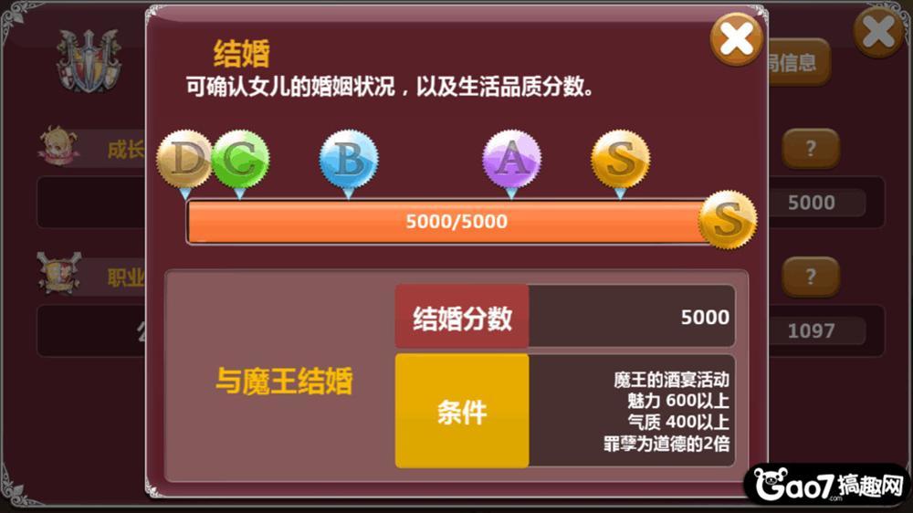 魔嫁达成条件如图。 【魔王酒宴活动】 魅力》600 气质》400 罪孽为道德两倍以上