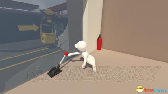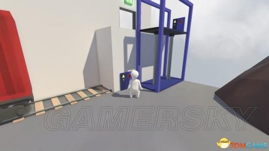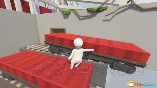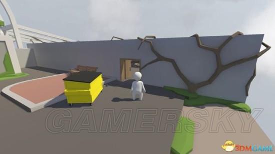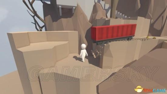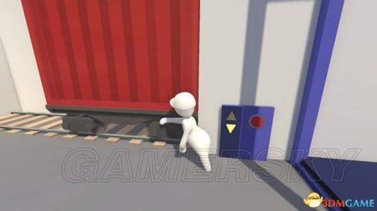 Bob从天而降落到火车关卡,按下抓取键移动Bob将黄色的垃圾箱移开,进入后方的门。
