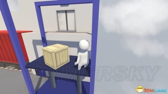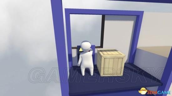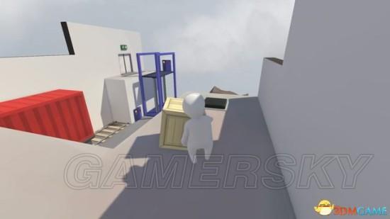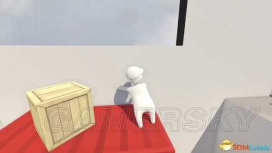 将视角抬高同时按下抓取键即可取下左侧高台上的木箱。