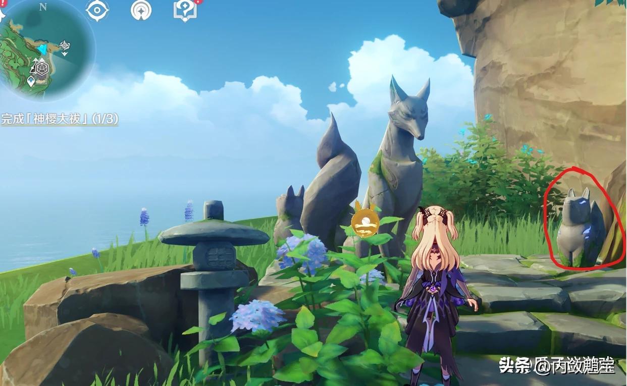 走任务得到留念镜,使用留念镜调查(三个)狐狸雕像,如图: