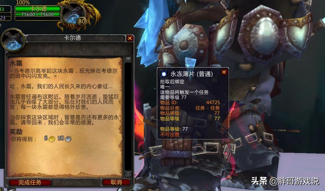 2,当玩家在霍迪尔之子的声望达到尊敬时,可以触发一个名为《永霜》的任务,玩家可以在丹尼芬雷周边拾取永冻薄片,然后用薄片来兑换350点声望。这个机制类似于TBC版本灵翼幼龙的龙蛋玩法。