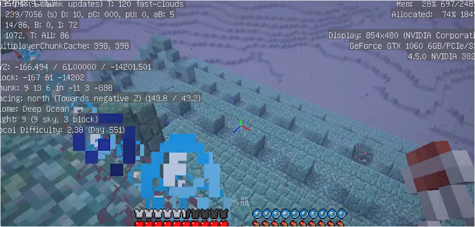 其中夜视药水可以为我们提供深海的清晰视野;而水下呼吸药水则可以保证我们不会在战斗中陷入窒息的尴尬。两款药水药效时间都相对有限,因而需要多准备几瓶,以此保证可以探索完巨大的海底神殿。