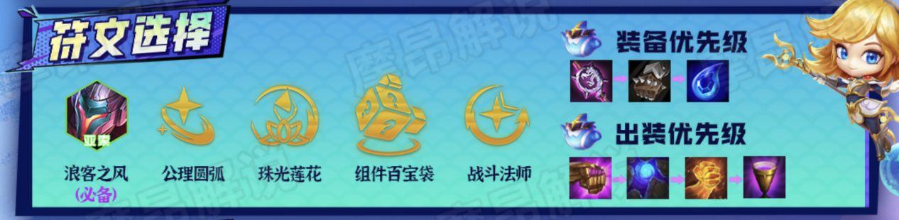 专属符文必备亚索的浪客之风,这是阵容核心,强玩摩昂也测试过,大后期强度会跟不上,很容易吃不到分。