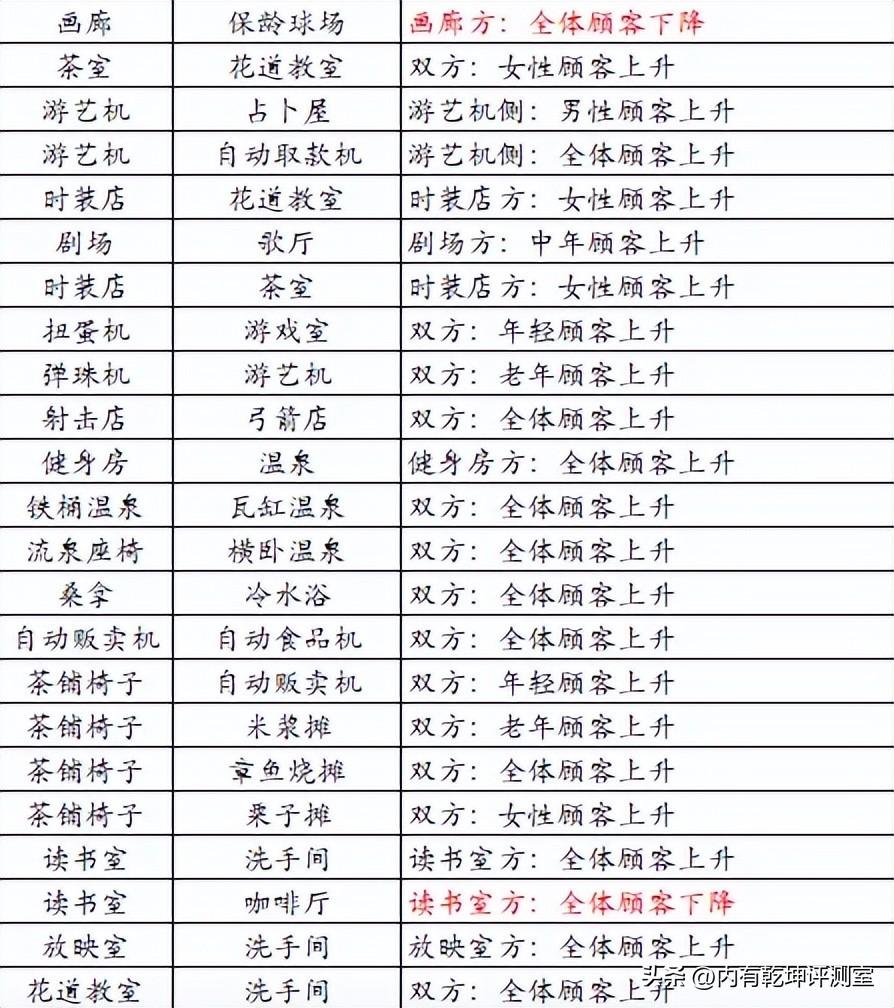 接下来就到了温泉物语2中最重要的建筑系统了,如果能从最初的布局开始注意建筑契合度,那么游客在住进客房后的满意度就会拉升到至少20分,然后他再随便去几个建筑玩一玩就可以达成95分以上,免去了多次邀请他们的烦恼。温泉物语2的建筑契合度除了增益效果外,还存在减益效果,比如客房和游艺厅放在一起就会产生减少客源的效果,因为太吵了,诸如此类的减益搭配还有唱歌房、保龄球等,这样的搭配就为我们的建筑布局带来了思路。