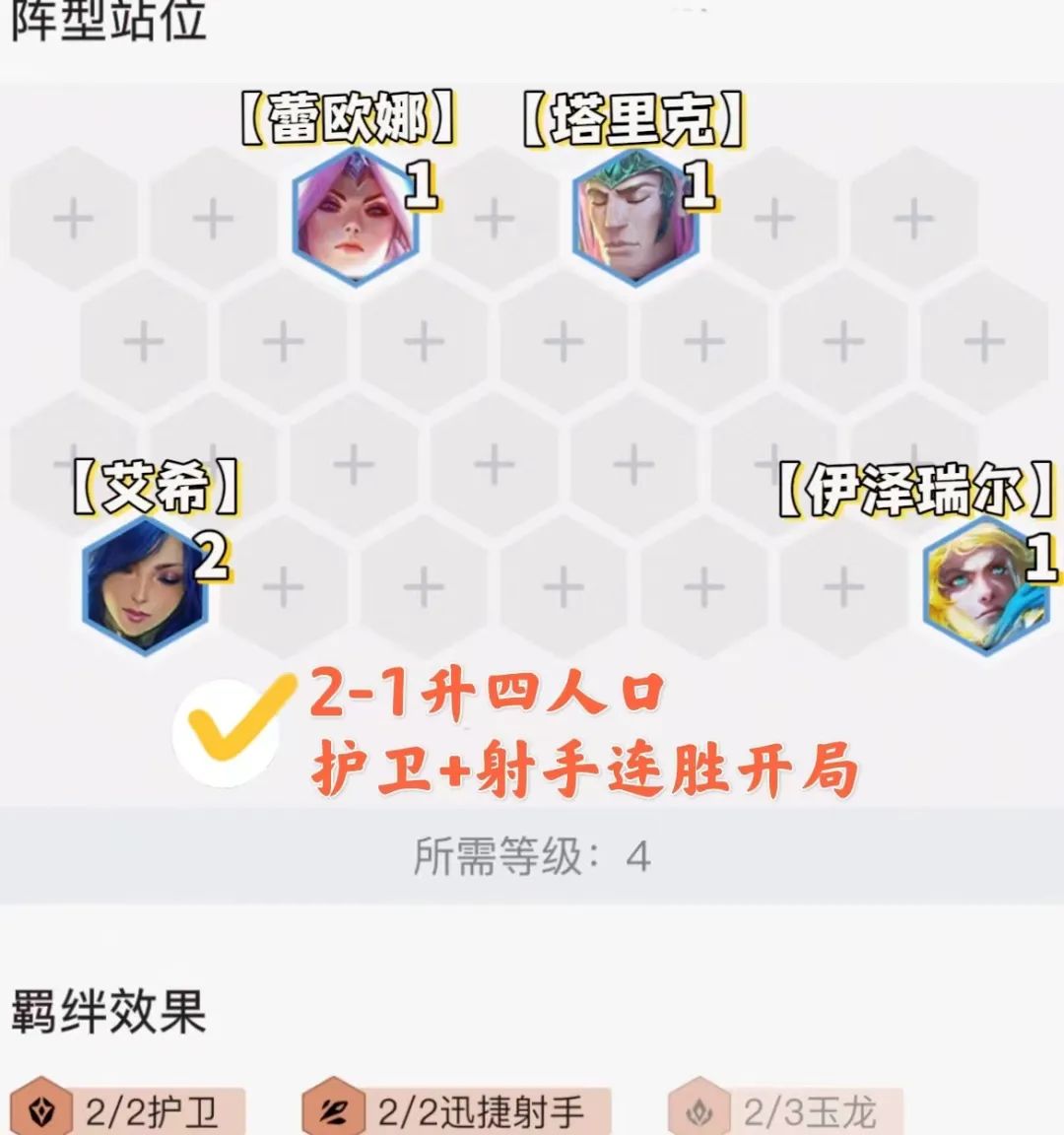 2-1升四人口,护卫+迅捷射手开局