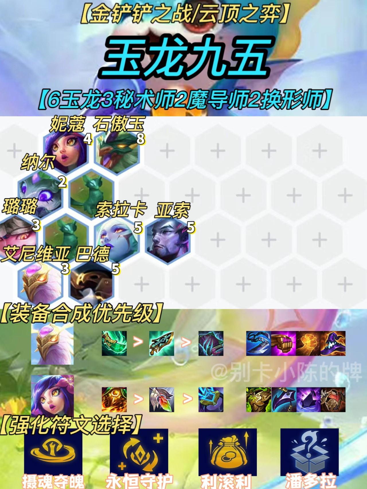 阵容的核心就在于玉龙恢复体系搭配九五的高容错高输出