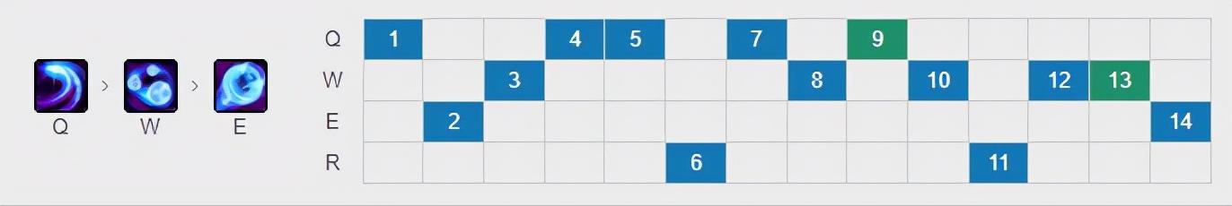 皎月加点主Q副W,2级学E,有R点R。
