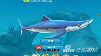 饥饿鲨世界大青鲨速度快得惊人,但是其撕咬能力就比较一般了,比较适合远行。