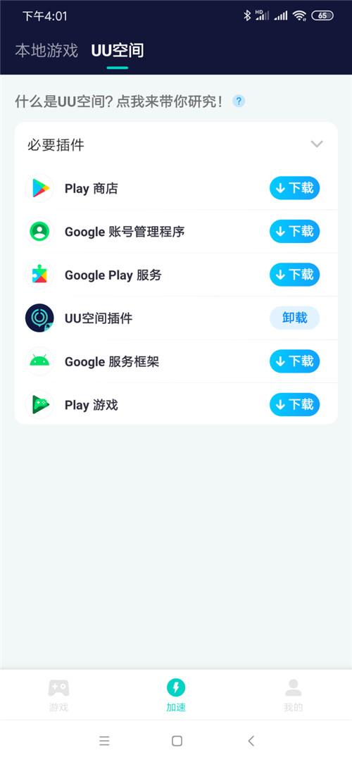 大家在游玩外服游戏时,往往需要安装谷歌框架,但有些手机却无法安装或出现登录卡99%等问题,这时就可以用网易UU手游加速器的UU空间来解决。