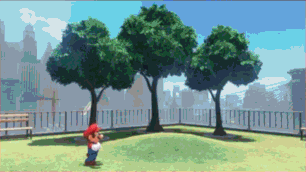 除此之外,结合帽子作为踏板的特性,再加上跳跃中的基础动作,玩家可以通过这些方式跳上一些原本到达不了的高台,或是原本够不着的远方平台。