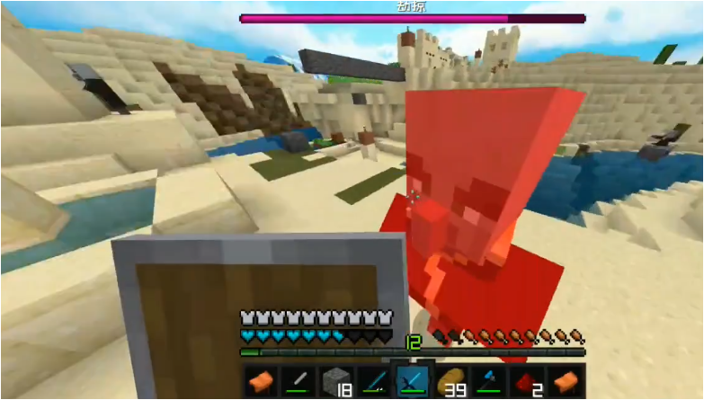 显示于屏幕正上方的“掠夺”进度条也是一个非常关键的信息,其所显示的是包括掠夺兽,卫道士,唤魔者等等敌人的血量综合,一旦一个敌人受到伤害,那么大血条就会损失一些血量,这与末影龙的BOSS血槽机制相似。
