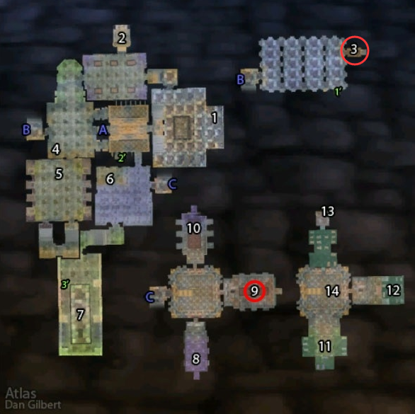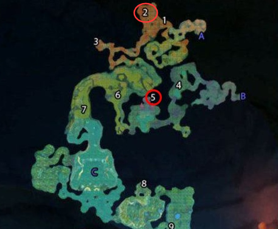 她会给你一个任务,任务线很短,最后要求击杀玛拉顿里的两个BOSS:诺克赛恩和维利塔恩。BOSS分别位于下图的2和5。