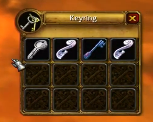 钥匙链是经典旧世1.12补丁中加入游戏的内容。不过,怀旧服里会随第1次更新补丁上线,因此目前怀旧服第1阶段里,你的钥匙依然要存在背包里。
