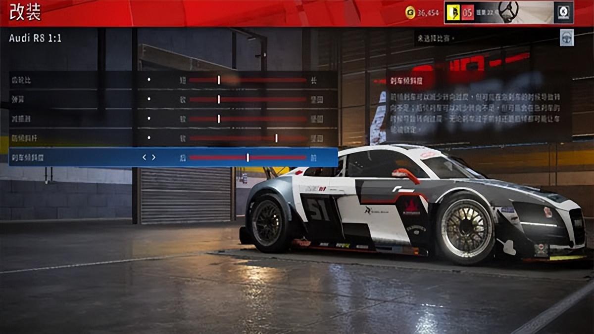 如果熟悉了极限竞速或者其他赛车游戏,那么超级房车赛的调教系统就比较“简陋”了。可以调整的部件只有5项,自由度不大。对于新手来说倒相对简单了,在了解基本原理后,就可以上手尝试了。