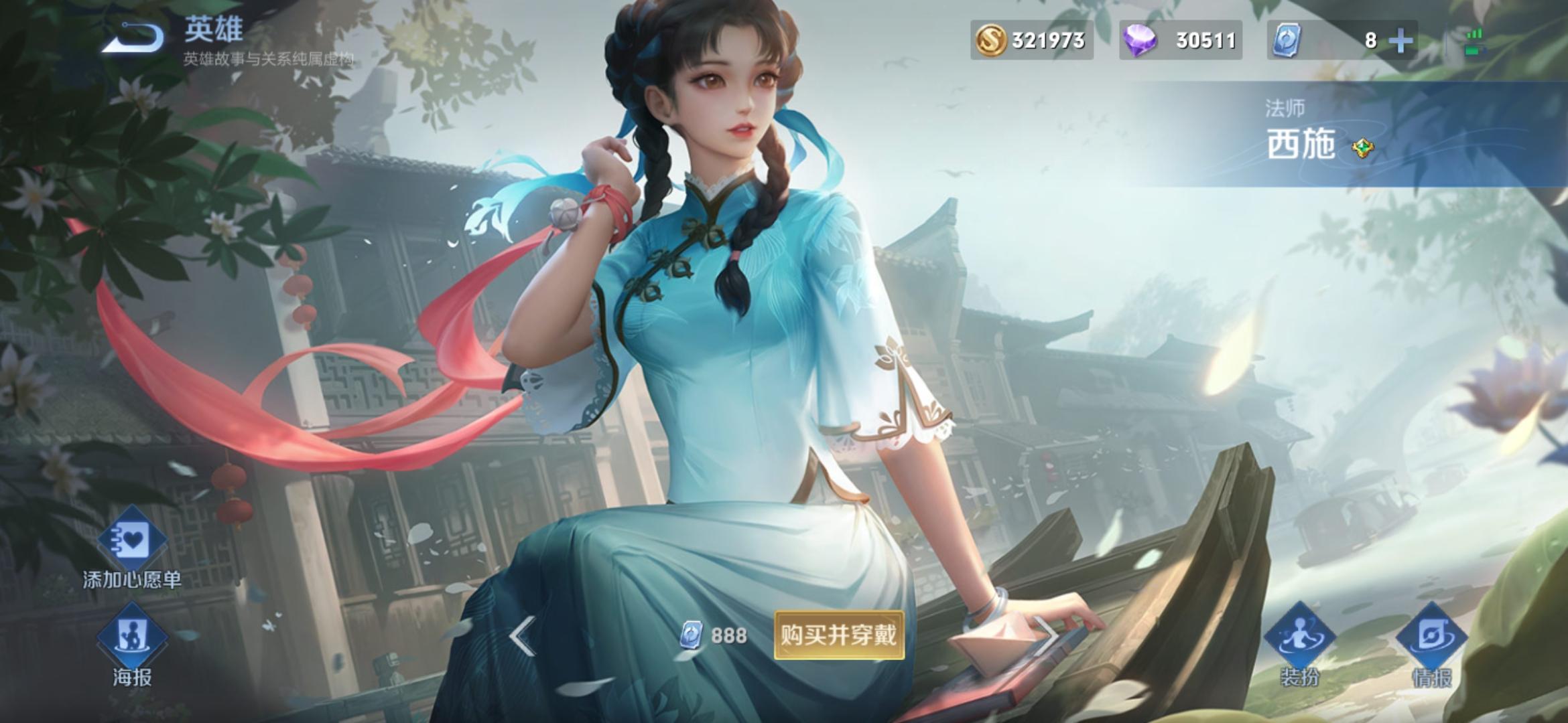 西施 定位:法师 皮肤:诗语江南