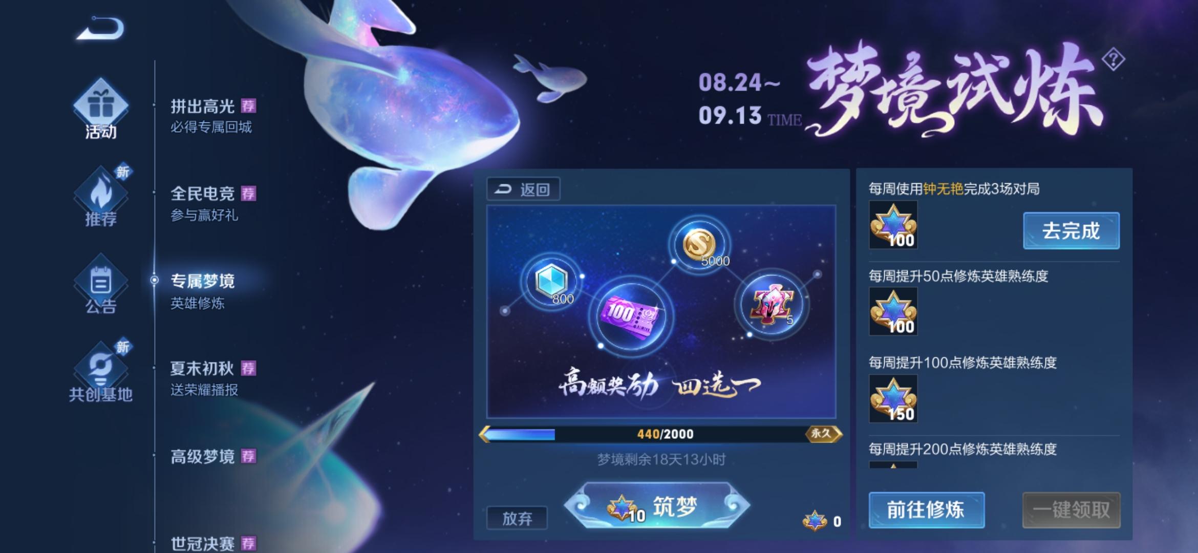 专属梦境活动界面