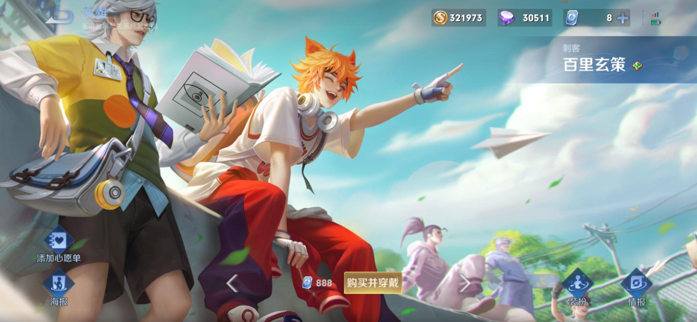 百里玄策 定位:刺客 皮肤:热力回旋