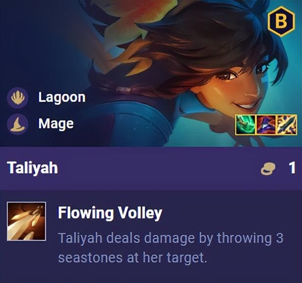 技能:塔利娅发射三个石块,每一颗对命中的第一个敌人造成170/240/320ap的魔法伤害。